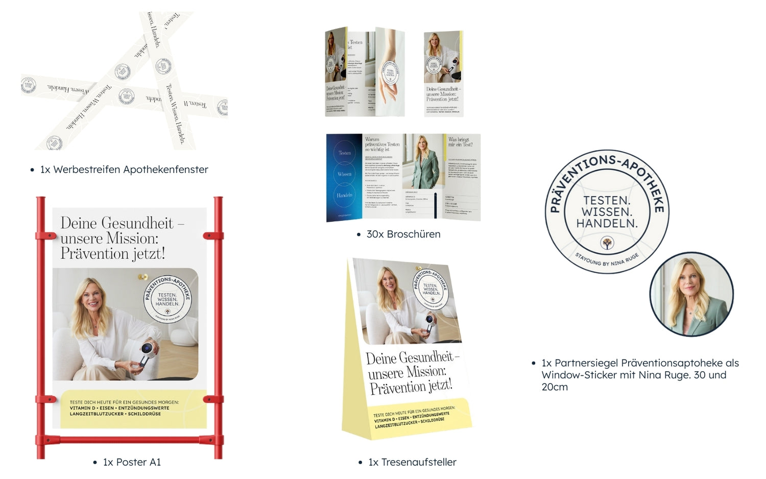 Mit dem IGLOO Multireader Starterkit positionieren Sie Ihre Apotheke sichtbar als modernes Gesundheitszentrum. Das begleitende POS-Paket rückt Ihre Kompetenz wirkungsvoll ins Blickfeld: Window-Sticker, Tresenaufsteller, Broschüren, Poster und Werbestreifen machen Ihre Apotheke sofort als zertifizierte Präventionsapotheke erkennbar. Auf diese Weise unterstreichen Sie nicht nur Ihre Expertise, sondern erhöhen zugleich die Aufmerksamkeit und stärken die Kundenbindung.